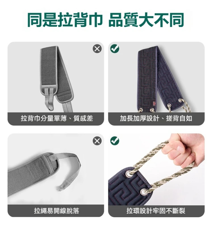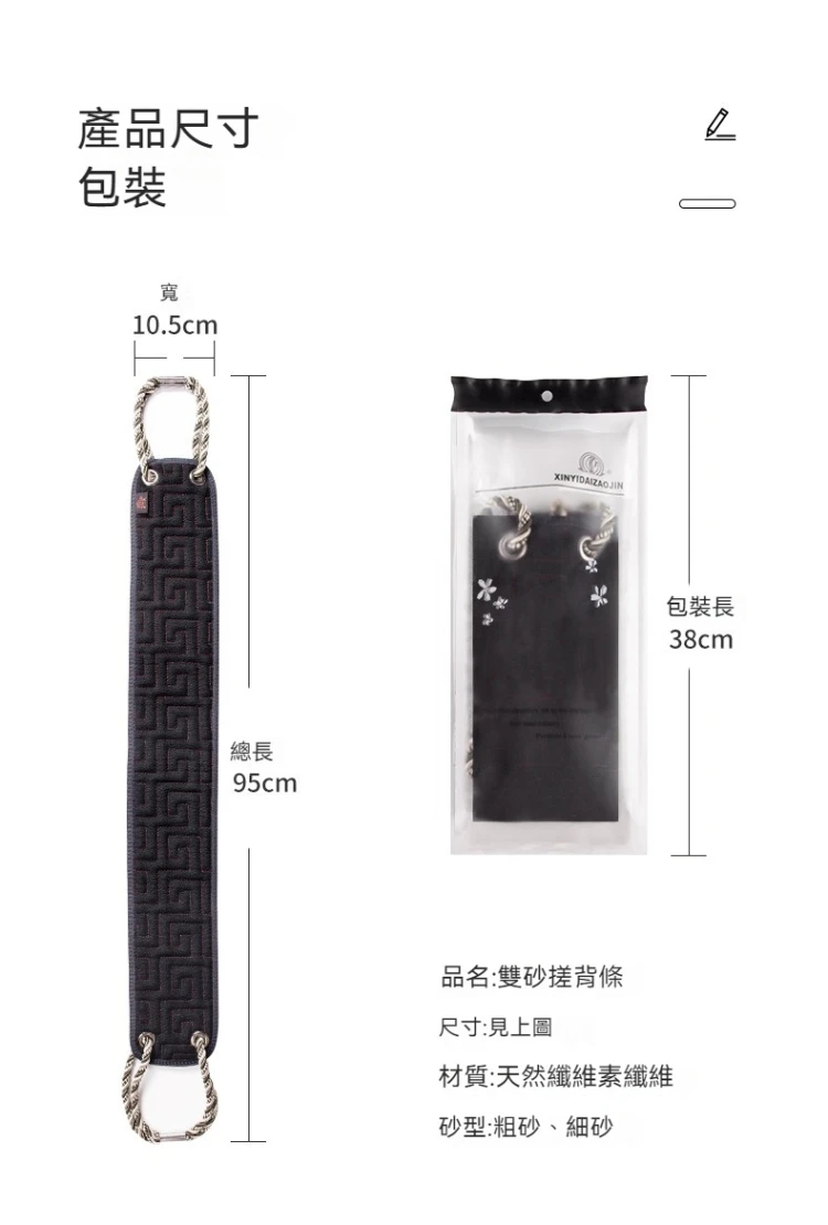 每天洗澡,是否總覺得背後搓不到?沐浴乳沖完還是感覺不夠清爽?這款粗細兩面設計的搓澡巾,讓您輕鬆搞定全身清潔,粗面深層去垢,細面溫和嫩膚,一次洗澡雙重享受。