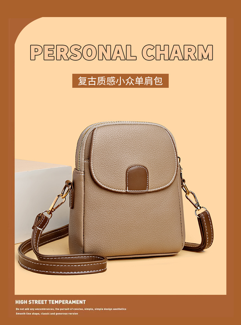 小巧精緻,時尚感十足。 這款真皮斜背包輕盈優雅,是日常使用的完美選擇! 方便攜帶,百搭時尚,專為追求優雅氣質的女性打造!